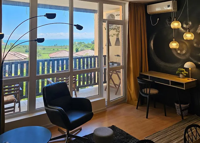 Apartmentul spațios Трехкомнатный Апартамент С Видом На Море Aheloi cu 1 dormitoare oferă acces rapid la diferite repere ale orașului, cum ar fi Lacul Pomorie, situat la doar 6 minute de mers pe jos. Pentru oaspeții care doresc un sejur activ, acest apartament oferă acces la un teren de tenis.